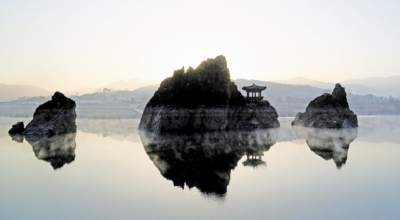 단양을 가로지르는 남한강 한가운데에 우뚝 솟은 세 개의 봉우리가 애국가를 배경으로 나올 정도로 경치가 훌륭한 곳이예요. 도담삼봉은 조선 건국에 공헌한 위인 정도전과 어린 무렵을 보낸 좋은 친구 퇴계 이황 선생의 마음을 흔든 장소로도 유명해요.