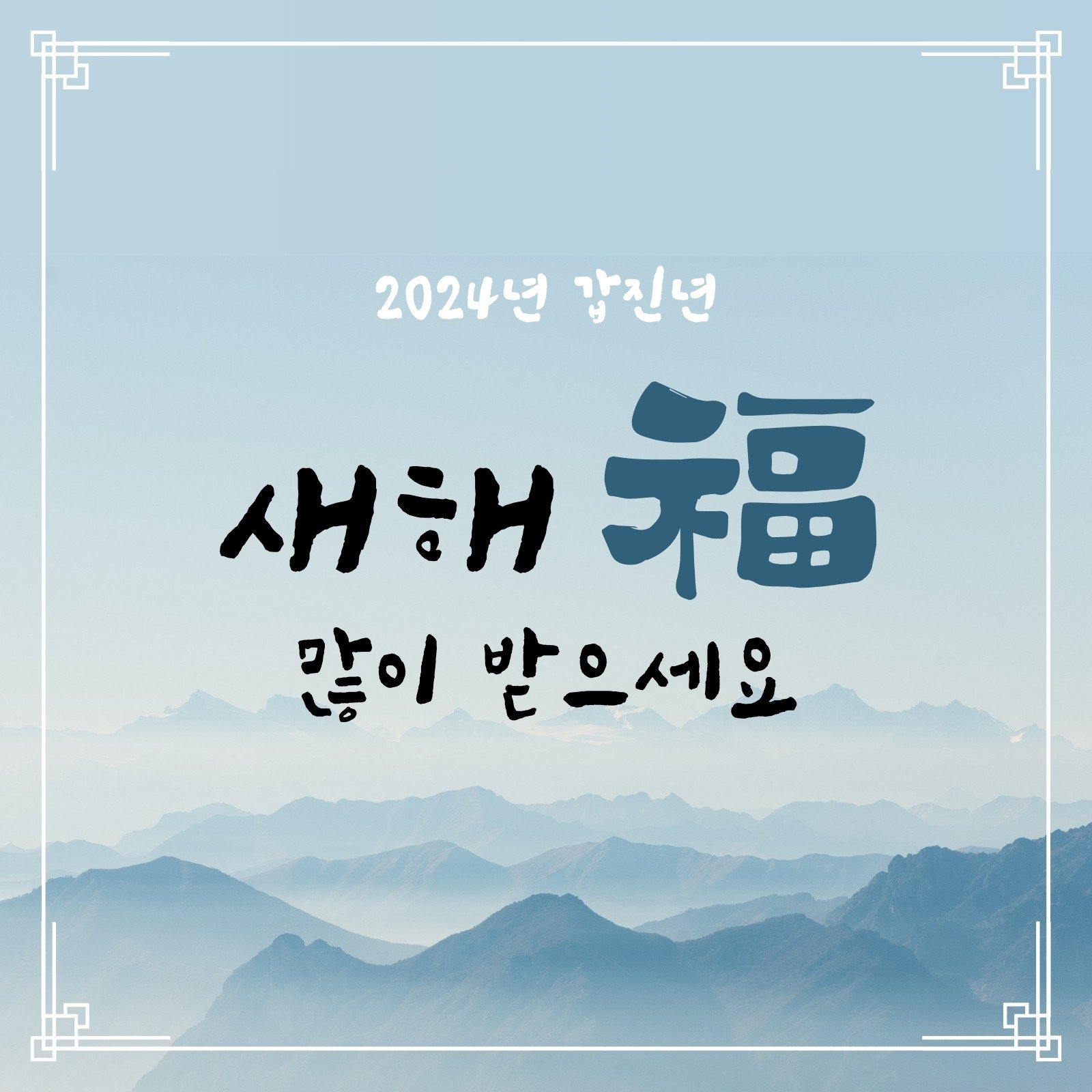 안녕하세요! 한해동안 어려운 여건에서도 보살펴 주심에 머리 숙여 깊은 감사를 드립니다. 다가오는 갑진년 새해에도 하시고자 하는 일 모두 성취하시길 바라오며 가정과 직장에 행복과 건강이 항상 가득하시기를 기원해요.