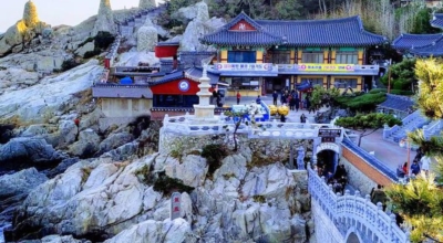 해동 용궁사는 놀라울 정도로 아름다운 자연 경관으로도 저명한곳으로 특이하게도 산속이 아닌 바닷가에 지어져 바다와 절이 어우러진 멋진 풍광에 여행자들의 발길이 없어지지 않는곳이라고 하네요.