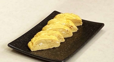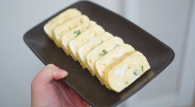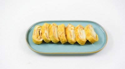 현미유를 사용했어요. 키친타월로 잘 둘러주세요. 충분히 달궈진 프라이팬에 계란물을 부어주세요. 윗면이 어느 정도 익었다면 잘 말아주세요. 끝에 요정도 남겨두고 계란물을 또 부워줄것 입니다. 그 끝과 잘 만나도록 계란물을 부어주세요. 잘 만난 거 같죠? 잘 말아주세요. 그리고 돌려가며 잘 익혀주세요. 잘 말아진 계란말이. 식힌 후 썰어줄 것 이예요. 칼로 이쁘게 썰어줍니다. 짠 완성됐어요.