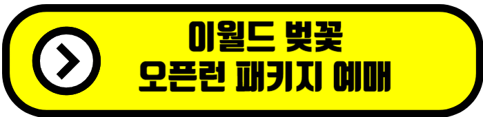 이월드에서는 매일 300명 한정 특가로 47% 할인가에 벚꽃을 즐길 수 있는 사전 입장 패키지를 판매하고 있습니다. 3월 말까지 매일 한정수량으로 판매된다고 하니 방문 계획이 있으시다면 꼭 미리 예매해 두시기 바랍니다.