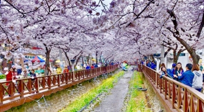 벚꽃축제의 최고봉이라고 알려진 '진해군항제'의 대표코스가 바로 여좌천입니다. 매년 벚꽃시기가 되면 여행객들은 벚꽃의 아름다움을 즐기기 위해 이곳을 찾는데요. 이 때에가 되면 ‘진해’라는 도시 전체는 벚꽃으로 뒤덮일만큼 진해 어디를 가든 벚꽃을 볼수 있다고 합니다. 진해 여좌천의 로망스다리는 한국의 아름다운 길 100선에 선정되었고 CNN선정 한국에서 필수로 가봐야할 아름다운 명소 50곳중 17위에 선정된 벚꽃명소에요. 한국의 대표 벚꽃축제인 '2024 진해군항제'는 2024.3.22(금)~4.1(월)까지 개최된다고 해요.