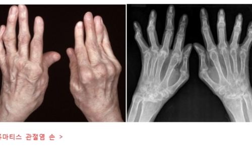통증이 느껴지는 손마디를 만졌을때 온기를 느낄수가 있는데 관절 마디가 건강했을때와 다르게 붓게 되는 가장 큰 원인은 관절을 감싸고 있는 활막이 붓고 활막의 주변에 관절삼출액 이라고 부르는 수분이 침범하기 때문입니다. 이런 증상이 긴 시간 지속된되면 관절 연골과 조직들이 차츰차츰 훼손되면서 관절 마디가 굳어버리거나 휘어서 환자 마음대로 쓸수 없는 장애가 생길수도 있답니다. 이런 경우가 없게 하기 위하여라도 류마티스 관절염 증상 초기부터 치료를 정밀하게 받아야만 해요.